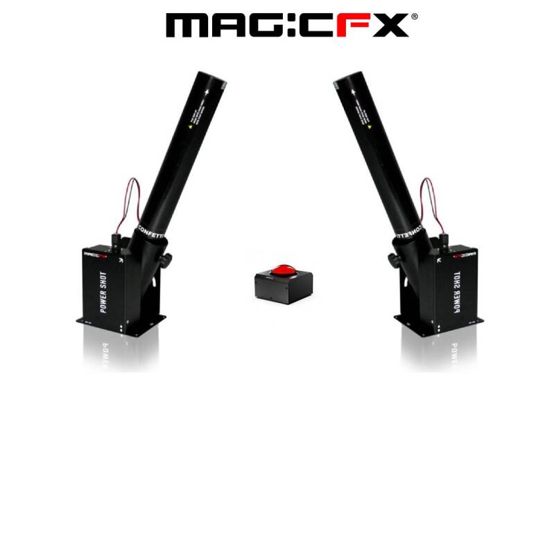 De POWERSHOT II is een compacte schietunit voor het afvuren van elektrische confetti- of streamer schieters. Plaats hem op het podium of in een feestzaal . Wij zullen de shooters voor u aansluiten zodat u alleen nog maar op de rode button hoeft de drukken en vuur maar af! Schiet confetti tot 6 of 12 meter en streamers van 12 tot 20 meter de lucht in.